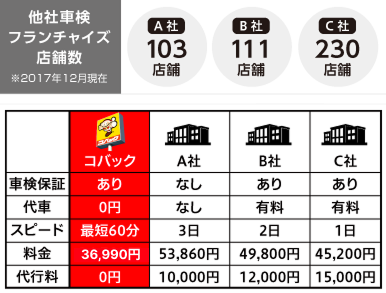 店舗数全国No.1スケールメリットを活かした一括仕入れにより他社にはまねできない大幅なコストダウンを実現。