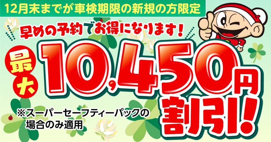 12月末までの車検期限であれば、最低でも1,650円割引になります!