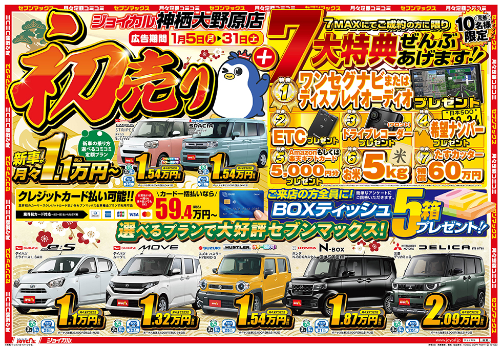 7年リースにて、ご成約頂きますと、7大プレゼント!!